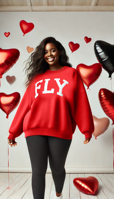 • A luxurious red crewneck featuring the iconic FLY collegiate logo, exuding confidence and charm.